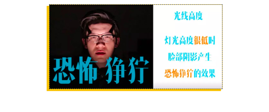 光线的高度也是影响造型的一个关键因素。比如同样是正面拍摄,灯光的高度很低时,人的脸部会产生恐怖狰狞的效果。